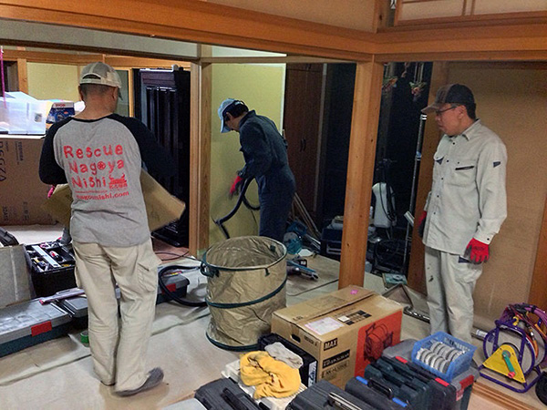 今隊は、前回に引き続き「塩害による立ち枯れ木の伐採及び片付け」と「拠点家屋の片付け・復旧」を予定していたのですが、台風17号の影響を受け実動3日間とも雨となってしまった為、屋外作業は中止とし「拠点家屋の片付け、復旧と清掃」にしぼって作業させて頂きました。