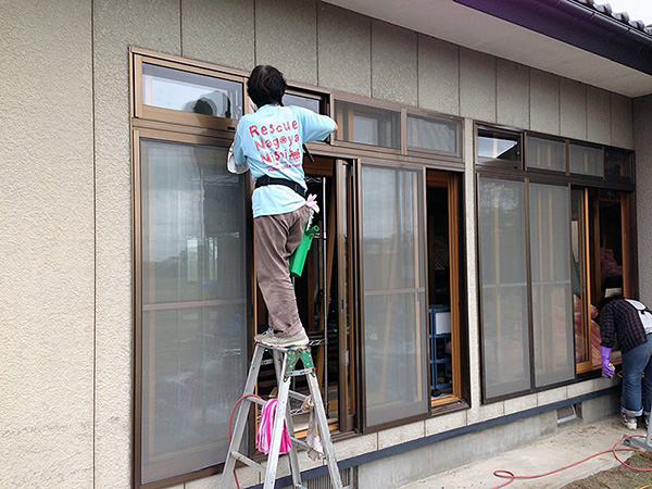 作業内容は、前回やり残した部分のボード撤去と張り、洗面所及び台所周りの復旧、そしてガラスとサッシ周りの徹底した掃除。