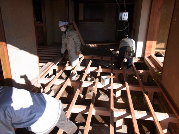 山本班も「床修繕」がほぼ半日で作業が終わり、久松班に合流。