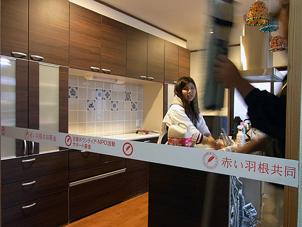 そして、この度のボランティアの拠点としての修繕・補修に当たりましては、「株式会社文創」様より、クロス、タイルカーペット、カーテンなど内装材料を提供下さり、施工の糊付け機を貸与してくださいました。