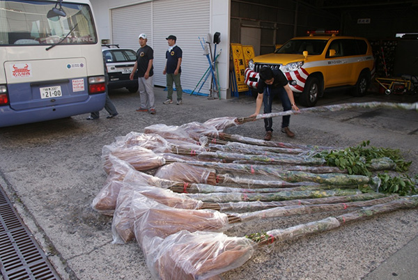 マイクロバスにおよそ3メートル程ある桜の苗木290本を積み込んでの大移送となりました。