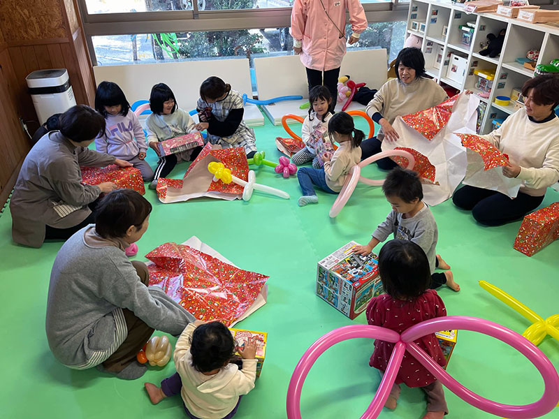 実はこのプレゼント、あらかじめ保育士さんにそれぞれの子どもに何のおもちゃが欲しいのか聞いてもらっていました。ですので開けてびっくり!自分の欲しかったおもちゃをサンタさんが持ってきてくれた!というサプライズ仕掛け、みんな大興奮でありました。奥能登のこどもは都会の子と違い?ほんとに素直でかわいらしいです!