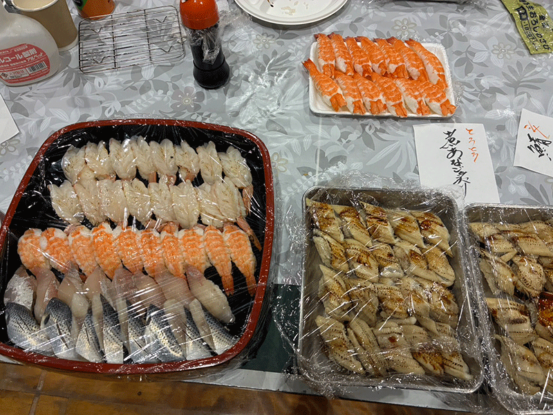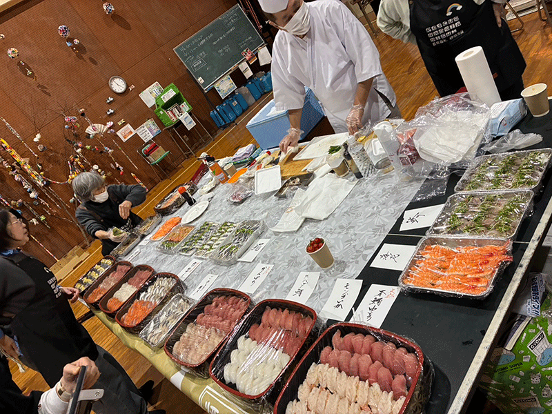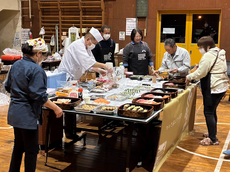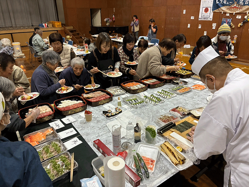 珠洲市の山中・若山第4仮設住宅の方と在宅避難されている方、40名の方に「出張寿司」を振る舞いました。
